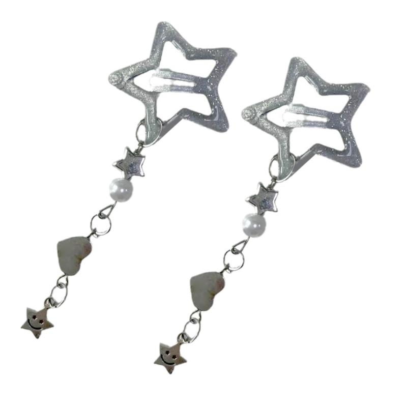 Harajuku Y2k Pentagrams Tassels Hair Clip for Women Sweet Cool Aesthetic Trend Hairpin Korean Fashion Hair Accessories