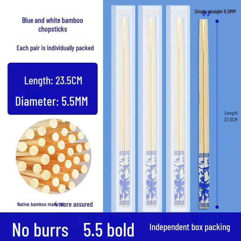 BeiYiPin Disposable Bamboo Chopsticks, Blue & White Porcelain Design