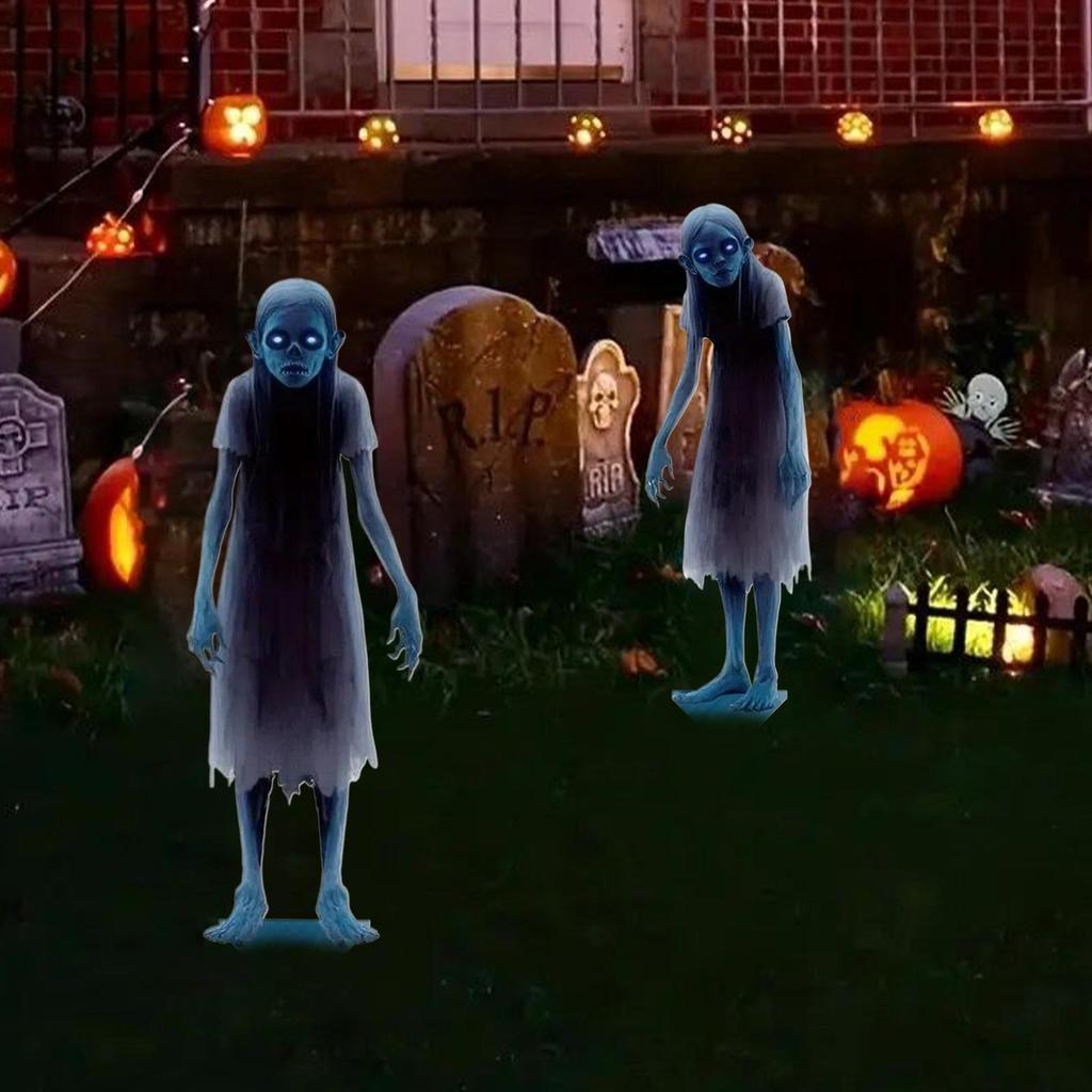 Twins Halloween Yard Signs Stakes Metal Spooky Twins Lawn Sign Stakes 2-pieces Halloween Ground Insertion Horror Decor For Porch