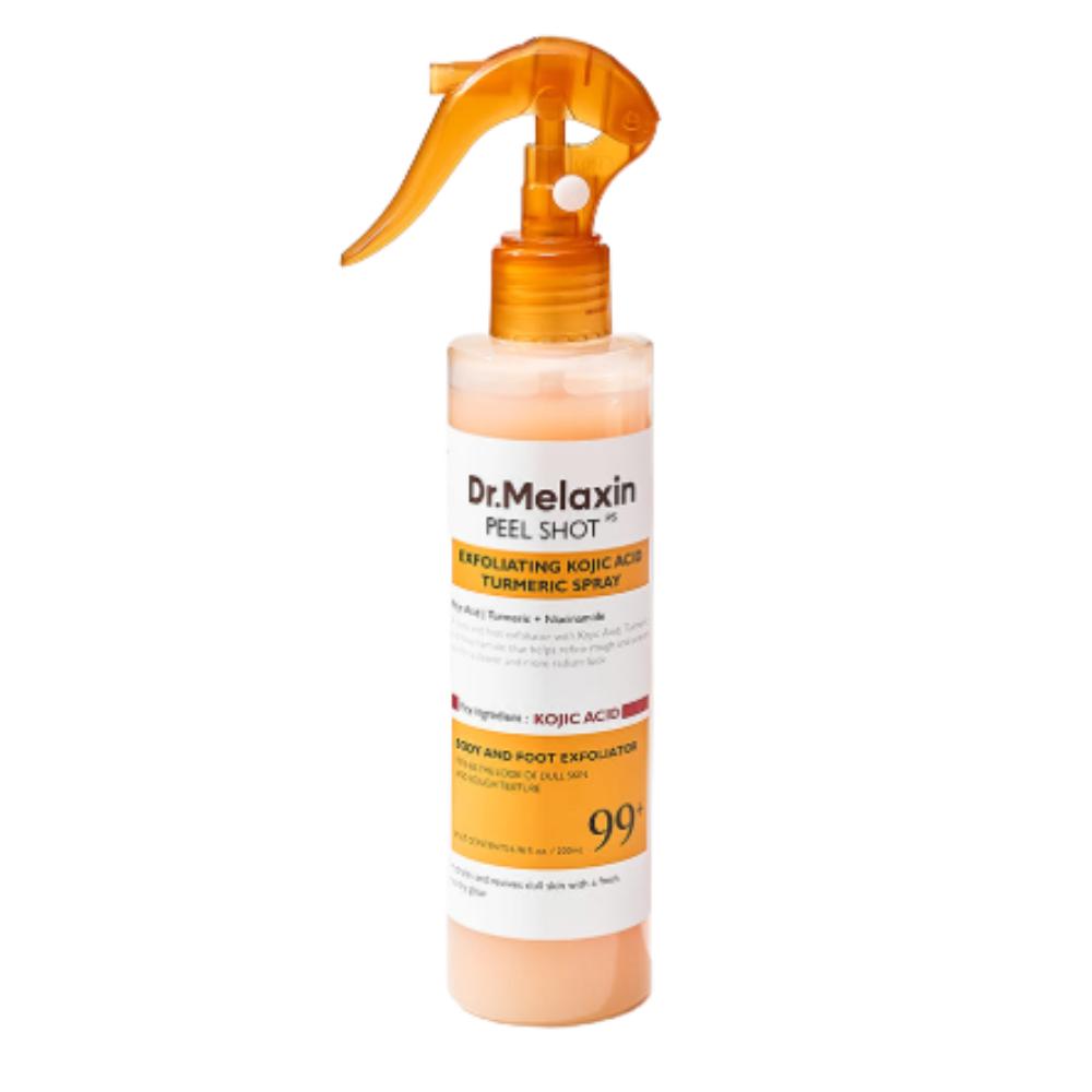Dr. Melaxin Peel Shot Kojic Acid x Turmeric Body Peeling Spray is an advanced exfoliating body care product designed to improve dull skin tone and enhance natural skin glow. Formulated with kojic acid and turmeric extract, it helps gently remove dead skin cells while supporting brighter, clearer-looking body skin.