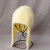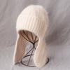 Fashion Women Winter Rabbit Fur Warm Hat Fur Ear Flap Cap Angora Knitted Hat Skullies Beanies Female Bonnet Woman Knit Cap