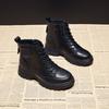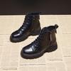 Women's British-Style Genuine Leather Martin Boots, Autumn/Winter 2025: Short, Round Toe, Chunky Heel, Lace-up with Side Zipper.