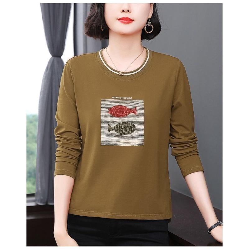 Autumn New Middle-aged and Elderly Mothers Hot Diamond Loose Bottoming Long-sleeved Trendy T-shirt Tops for Women