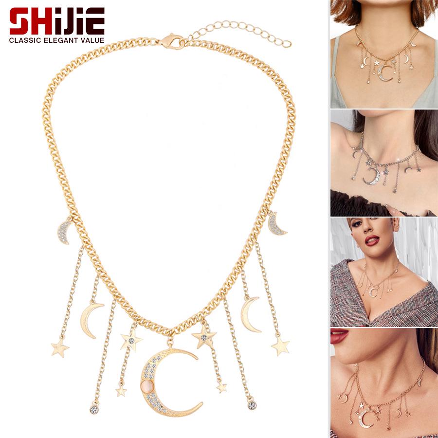 Star Moon Tassel Pendant Necklace - Inlaid Diamond Choker Clavicle Chain