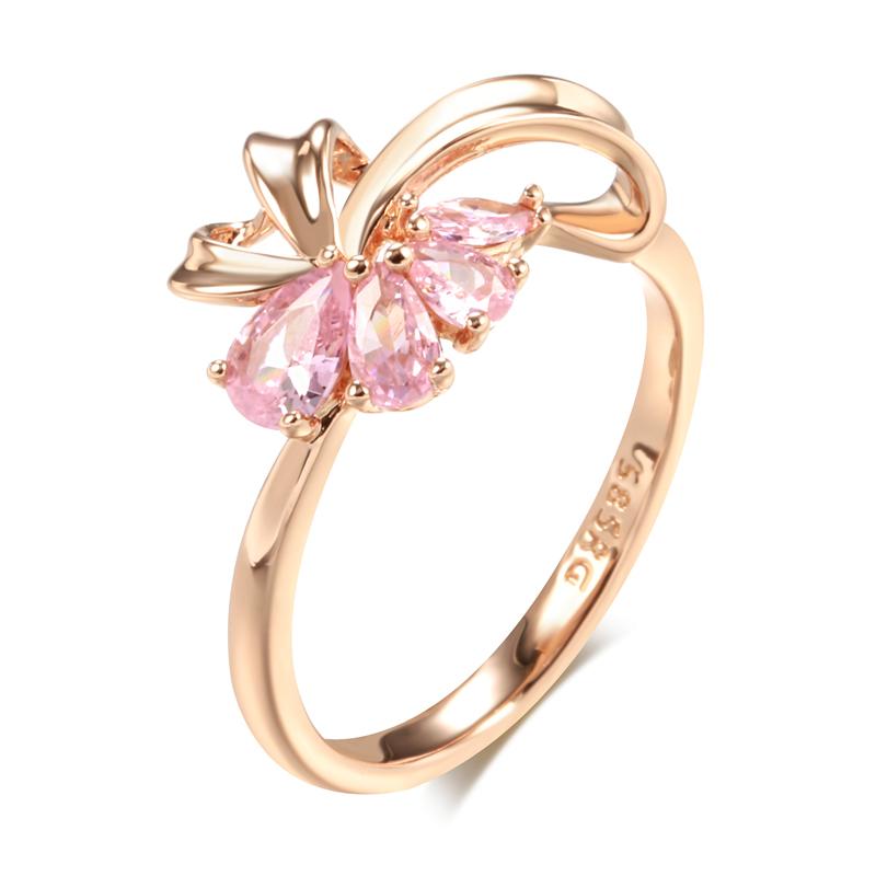 Pink Natural Zircon Ring For Women Trendy Rose Gold Color Vintage Wedding Party Fine Daily Jewelry