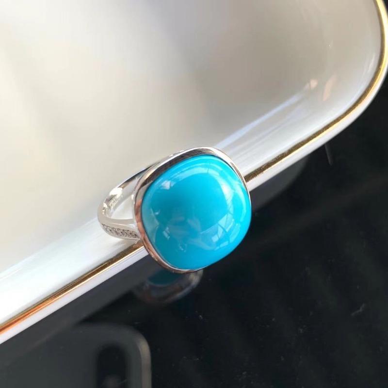 Classic Glossy Turquoise Bread Square Rings For Women Simple Vintage Blue Ring Suitable For Daily Wear Light Luxury Jewelry