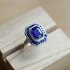 Vintage New In Blue Gemstone Wide Square Engagement Ring Court Style Classic Banquet Engagement Jewelry For Women Gift