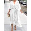 New Women's Solid Color Strap Long Sleeve Batwing Sleeve Irregular Dress Plus Size