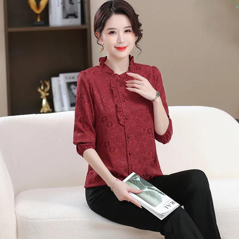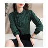 Western Style Jacquard Flowing Satin Shirt Women's Autumn New Lotus Leaf Collar Versatile Long-sleeved Top