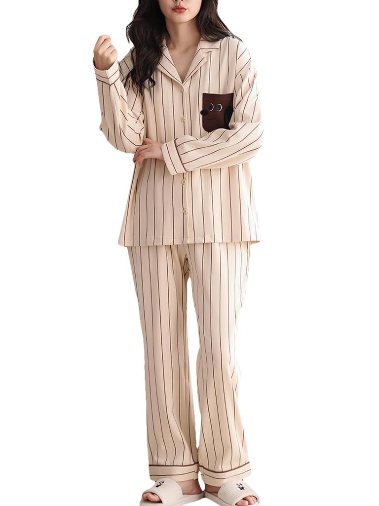 [A relaxed, cute silhouette that also flatters your figure] The relaxed width and slightly longer length provide ample coverage for any figure concerns. The stress-free fit ensures a comfortable fit for all body types. The thickness and softness make it easy to adapt to the subtle temperature changes, especially in spring and autumn, and the look is relaxed and natural and cute. These women's pajamas combine practicality and fashion, making them perfect for casual visits without feeling intimidated.
