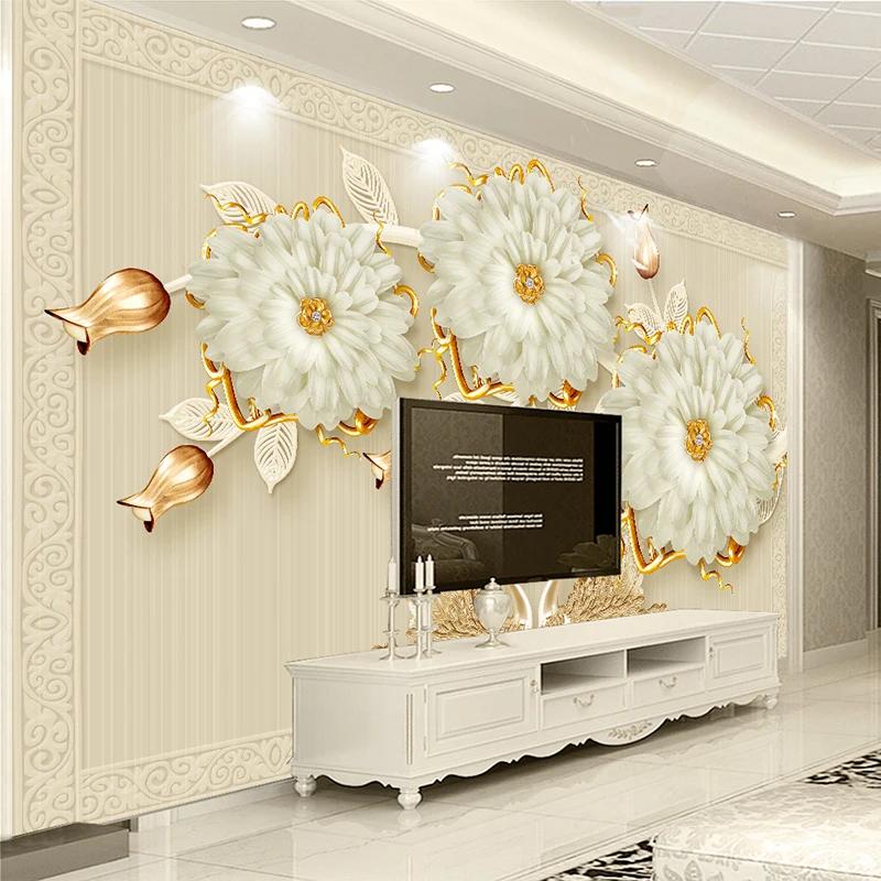 European Style Luxury 3D Wallpaper Jewelry Flowers Swan Mural Living Room TV Sofa Background Wallpaper