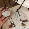 New Chinese retro Zen leather rope necklace autumn and winter bohemian ethnic wind leaf long sweater chain