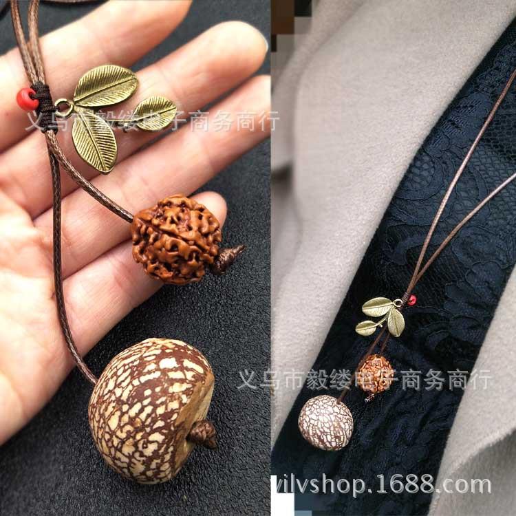 Retro wooden pendant, long spring and summer literary sweater chain, simple ethnic style necklace, accessories cotton and linen clothes