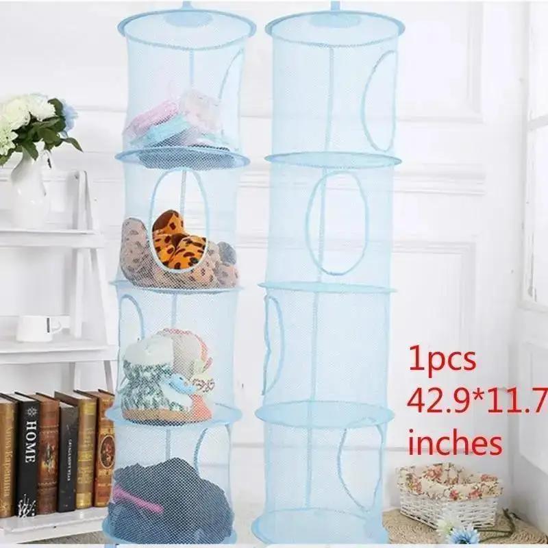 Cesta Colgante Plegable de Cuatro Capas Malla Transpirable Cesta de Almacenamiento de Juguetes Jaula de Almacenamiento Cesta de Secado Organizador de Hogar