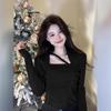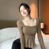 Pure desire sexy sweet spice girls female niche autumn chic high-end square neck knitted sweater