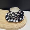 Tazas de café y platillos de cerámica a rayas blancas y negras de estilo retro americano, tazas de latte de alto valor, tazas de diseño de nicho