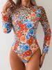 Nuevo Traje de Baño de una Pieza Deportivo Europeo y Americano para Mujer de Manga Larga Color Sólido Patchwork Traje de Baño para Mujer