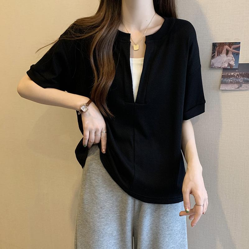 Two Large-sized Fake V-neck Short-sleeved T-shirts for Women, A Loose and Short Top That Can Cover The Belly and Make One Look Slimmer in Summer