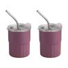2pcs 304 Stainless Steel Cups Stackable Metal Cold Water Glasses Double Walled Drinking Cup with Straw and Lid