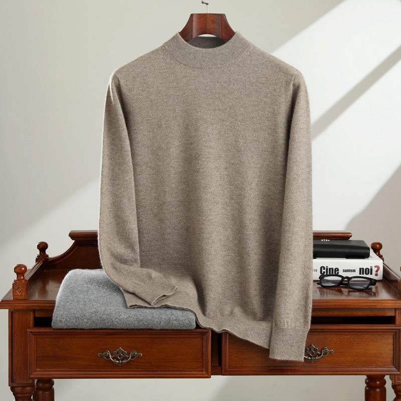 New cashmere sweater men's semi-turtleneck pure cashmere sweater men's loose bottoming cashmere knitted sweater