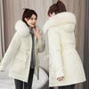 Women's new mid-length fur collar hooded cold lightweight thickened padded warm loose high quality fabric casual sports cotton clothing