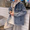 Chaqueta vaquera para hombre, primavera y otoño, nuevo diseño, chaqueta falsa de dos piezas, suelta, informal, con capucha, versátil, nuevo estilo