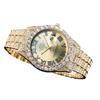 Reloj de acero de aleación con calendario de diamantes de agua y esfera de diamantes completa con escala romana para hombre