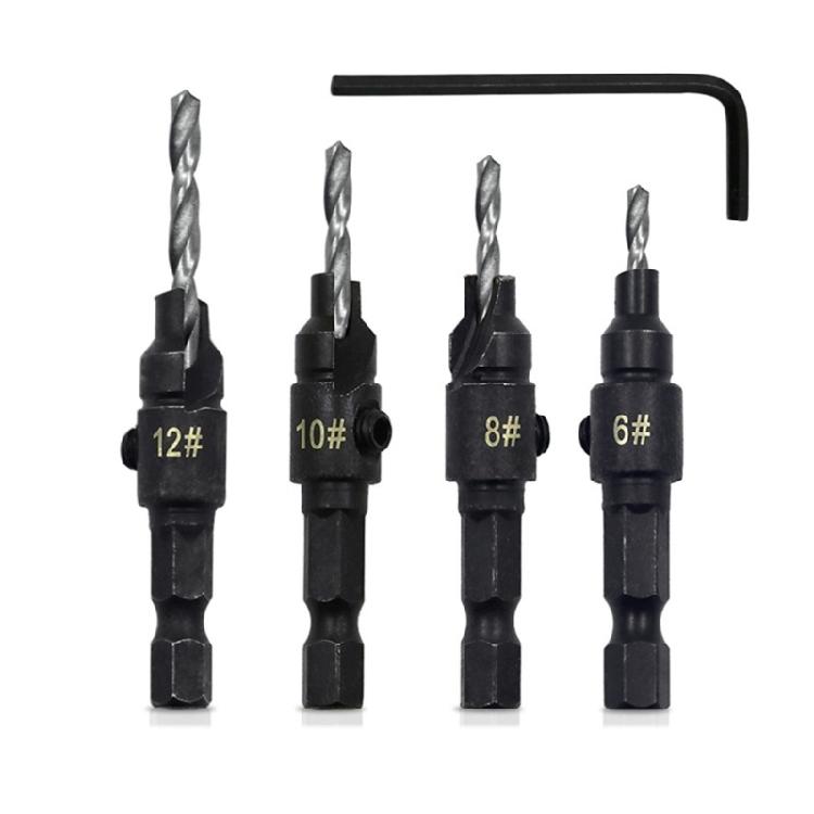 4Pcs Countersink Drill Bit Set for Wood Counter Sink Wood Screw Hole Cutter Reamer Tapered Chamfer Woodwooking Tool