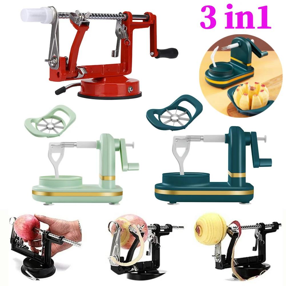 1. 3-in-1 Functionality:Peel, Core, and Slice: This manual peeler machine offers three versatile functions in one device. It can effortlessly peel, core, and slice fruits, providing convenience and efficiency in the kitchen.With this machine, you can easily peel, core, and slice fruits with just one tool.It saves your time and effort by combining three tasks into a single device.The multi-functionality allows for easy preparation of various dishes and recipes.