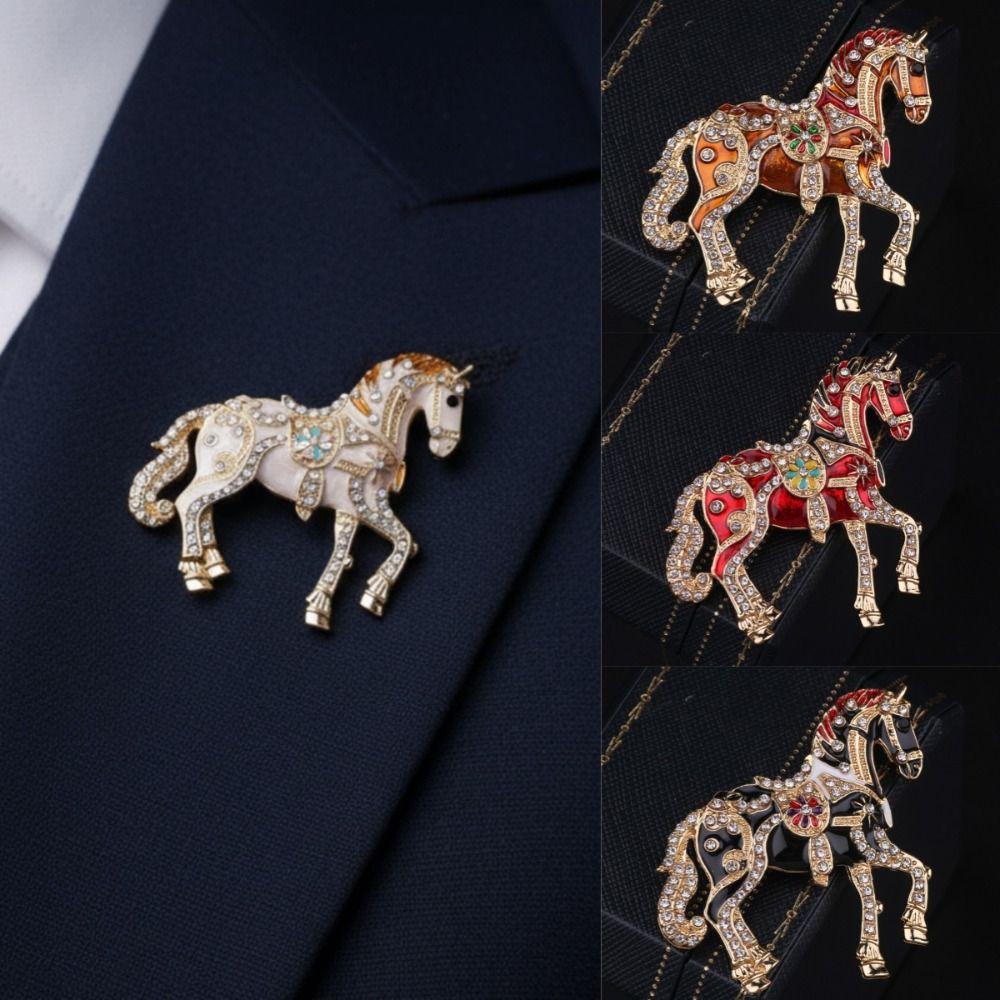 Enamel Strong Horse Brooches Rhinestone Metal Badge Pin Zodiac Animal Lapel Pins Unisex