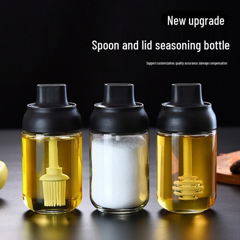 Moisture-Proof Glass Seasoning Bottle Set with Spoon Lid and Oil Brush
