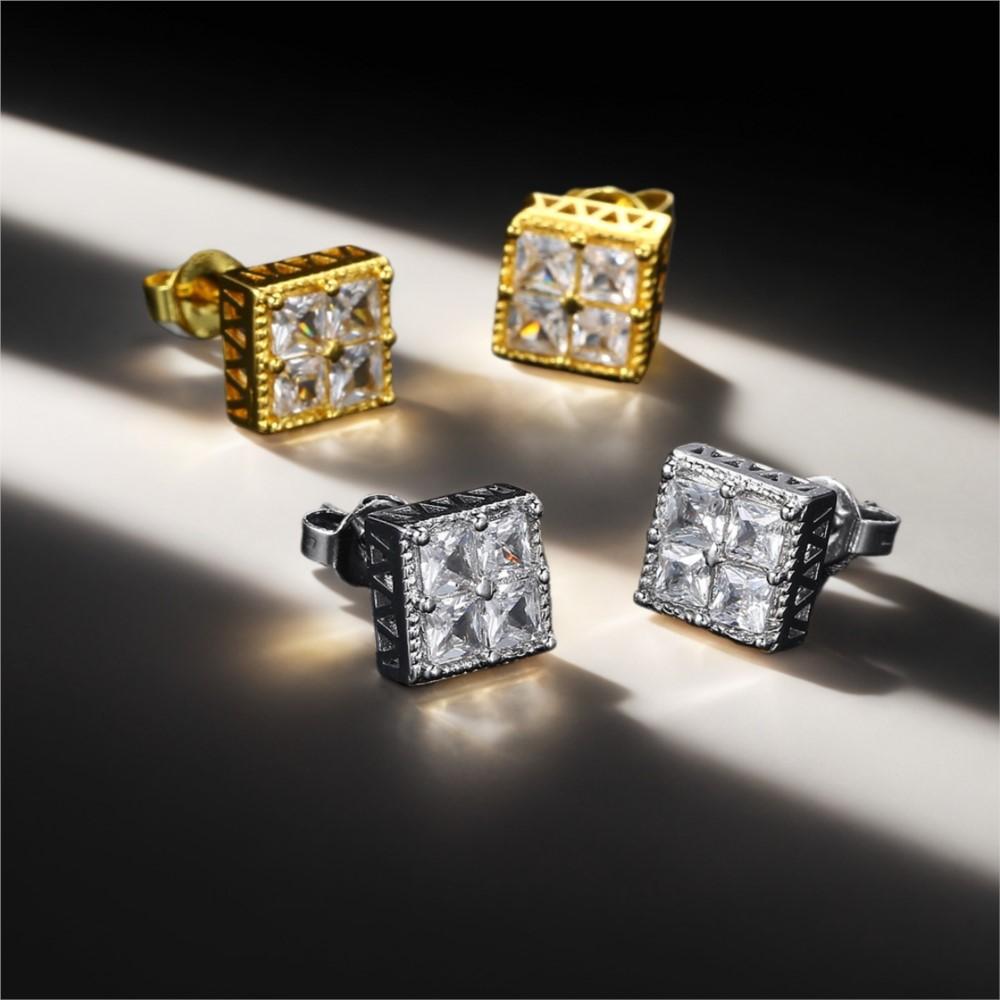 Popular Gold Color Earrings For Men Women Square Copper Color Cubic Zirconia Earings Charm Daily Wear Jewelry Push Back OHE150
