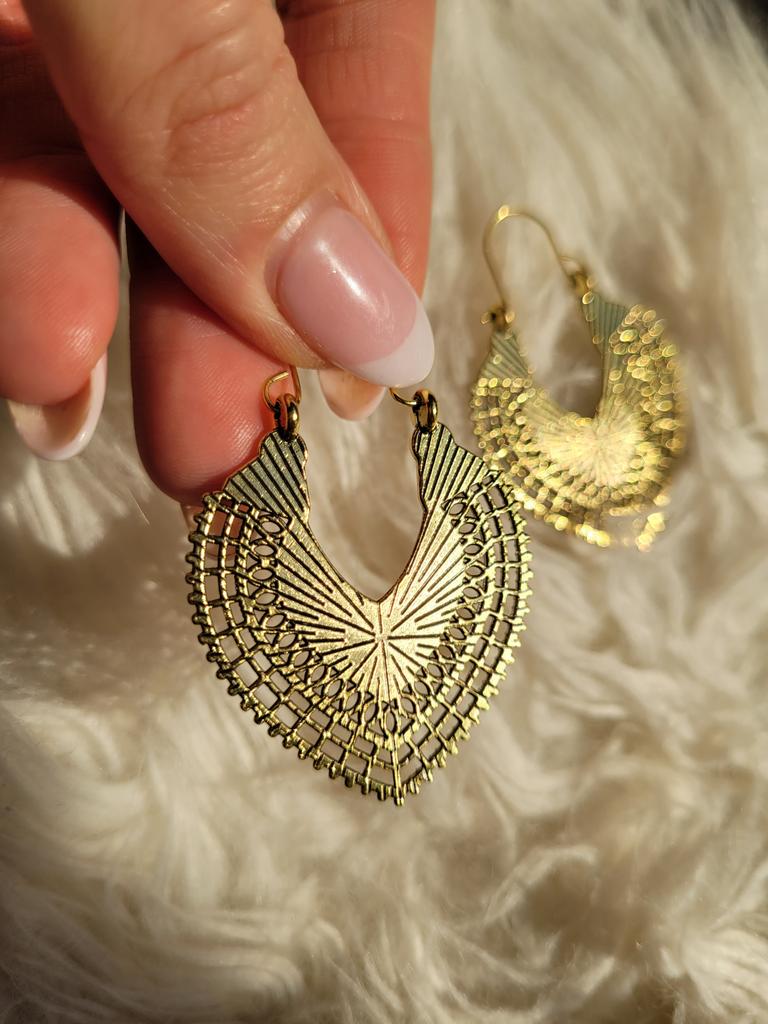 * Pendientes llamativos estilo Boho * ⭐⭐⭐⭐⭐ Me pedí estos pendientes y estoy absolutamente encantada con el diseño. Tienen ese encanto especial de "oro viejo" que combina perfectamente con conjuntos boho o un estilo vintage chic.. 💥 Diseño y Óptica: Los pendientes están muy bien trabajados al detalle. Lo que me parece especialmente genial es que están repujados por ambos lados... la parte delantera con filigranas y la parte trasera con un elegante diseño de rayos. Como están disponibles tanto en dorado vintage como en plateado vintage, hay algo para cada tipo.. 💥 Comodidad de transporte: Ultraligero! Lo que más me sorprendió positivamente: Los pendientes no pesan nada. Se llevan extremadamente cómodos.. El lóbulo de la oreja no se estira hacia abajo ni se alarga, lo que suele ser un problema con este tamaño.. Por lo tanto, se pueden llevar sin problemas todo el día sin que molesten ni pesen.. 💥 Manejo: El cierre es fácil de usar, solo hay que tener un poco de tacto al encajarlo para que el gancho no se doble.. 💥 Entrega: El tiempo de entrega fue de 15 días... para esta fantástica relación calidad-precio, la espera definitivamente valió la pena. 💥 Conclusión: Un hermoso accesorio llamativo para todos los fans del estilo Boho, que visualmente tiene mucho impacto, pero se siente ligero como una pluma en el oído. ¡Recomendación de compra absoluta! 👍