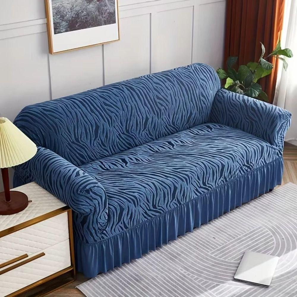 Stretch Fabric Jacquard Sofa Cover Sea Wave Pattern Dustproof Sofa Cover Living Room