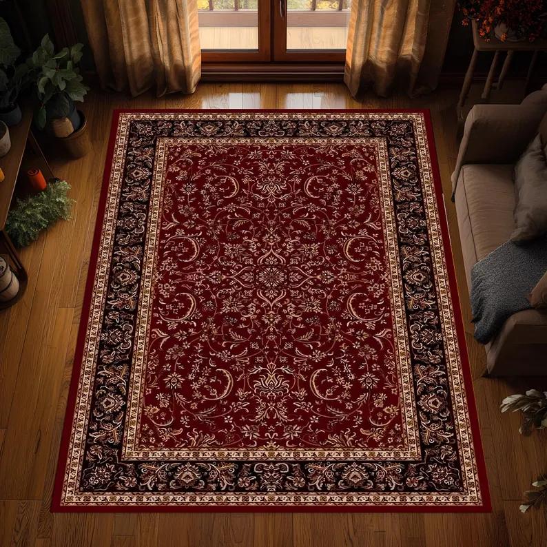 Alfombra Persa Roja Clásica Alfombra Tradicional con Medallón Decoración de Salón Estilo Vintage Alfombra Lavable Alfombras Antideslizantes Decoración Retro