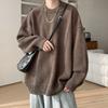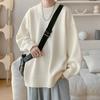 American-Style Lazy Round-Neck Sweater for Men, Winter Trendy Vintage Couple Knitwear, Retro Solid Color Pullover
