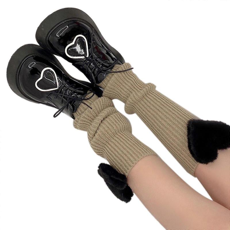 Brand new and high quality Features: Made of high quality acrylic fiber material, skin-friendly, soft and comfortable to for touch. Pull down for a scrunch sock look, or pull up to thigh as leg warmer, over your shoe for a boot look. Simple solid color, ribbed knitted striped, sweet 3D stuffed plush love heart decoration. Match them with your favorite dresses, skirts, shorts, flat shoes, high heels, and so on. Suitable for casual, party, school, street, etc.