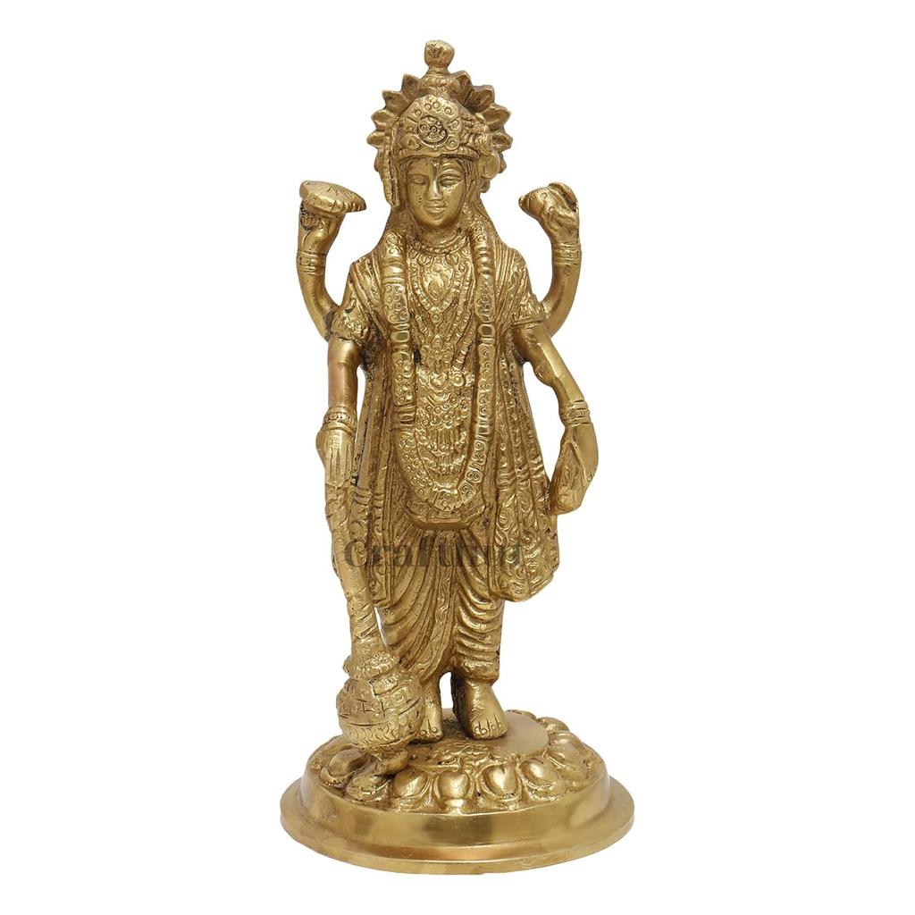 Lord Bhagwan Vishnu Ji Narayan Holding Club Brass Statue, Gold, Brass - 7 Inch