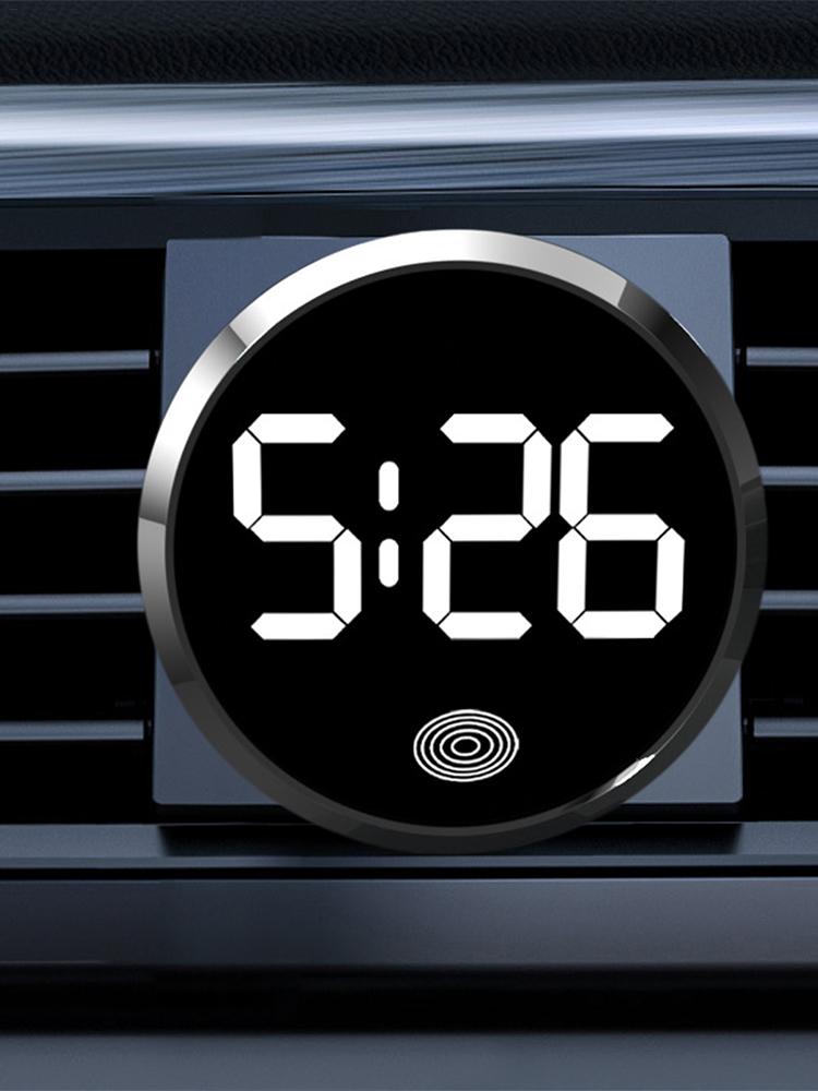 Fashionable car mounted LED electronic meter with circular alloy touch glow in the dark creative digital clock