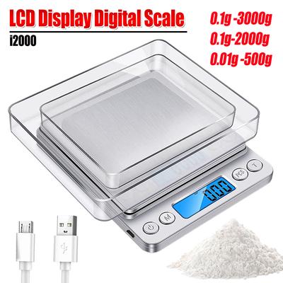 2kg/3kg/500g Báscula Digital Pequeña para Alimentos Pantalla LCD Báscula de Gramos 0.1/0.01g 6 Modos oz/gn/ct/ozt/dwt Báscula de Cocina Multifunción