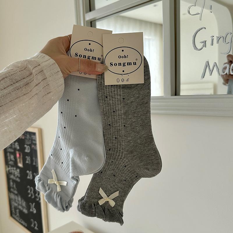 Songmu'S Bow Flower Bud Mouth Polka Dot Boneless Socks New Korean Mid-Tube Socks Women