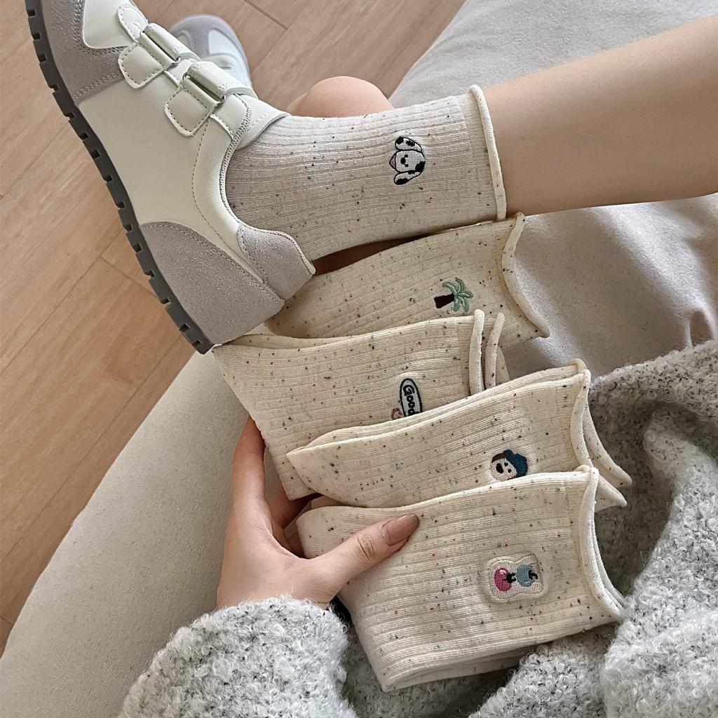 Boneless Socks Girls Tube Socks Rolled Edge Dot Gauze Embroidered Puppy Girl Socks Trendy Cute Student Stockings