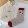 Wool Socks Women Cartoon Cute Cat Mid-Tube Socks Diamond Plaid Lace Pile Socks Red Socks