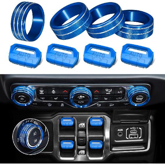 8Pcs Button Knob Cover for Jeep Wrangler JL JLU 2018-2024 2025 & Gladiator JT -2024 2025 Accessories, JL Window Switch Button Cover Volume Radio Air