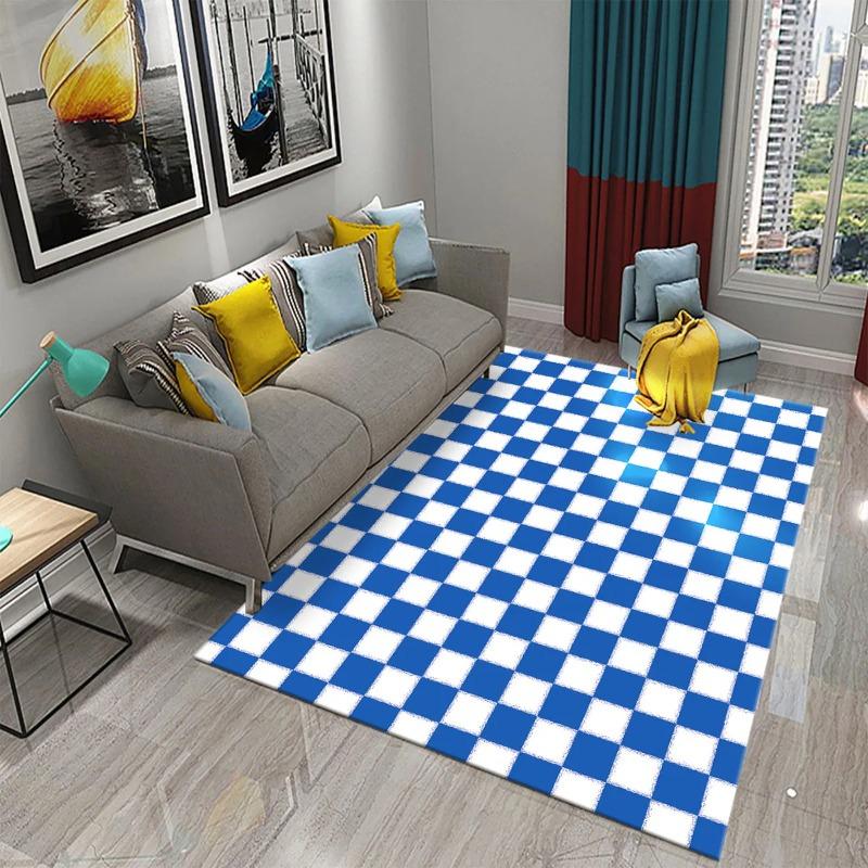 Modern Checkerboard Area Rugs Red Green Blue Colors Wave Pattern Design for Contemporary Living Room Decor