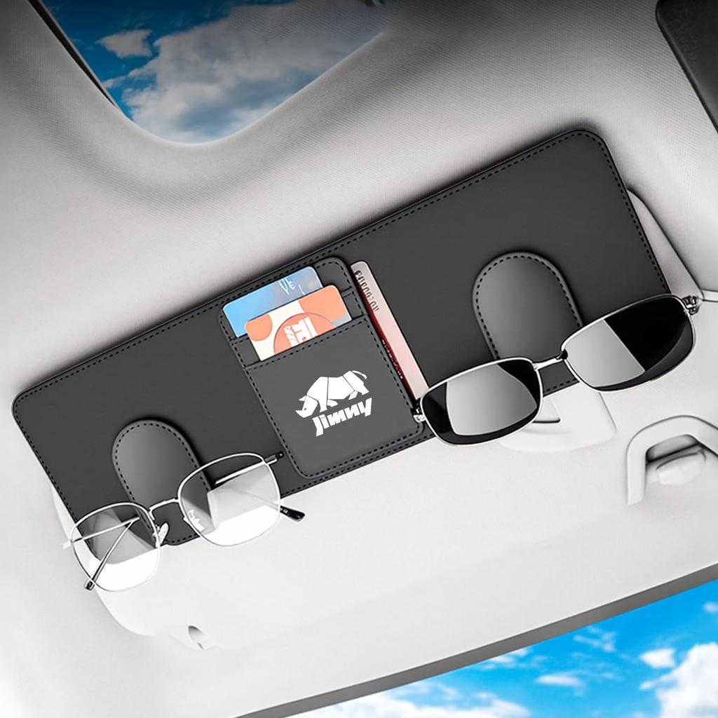 Jimny Car Sunglasses Holder with Two Glasses Clips and Three Card Fits Jimny jb64 Sun Secure PU Easy to Car Large Includes Glasses Cloth Pockets,