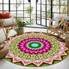 Boho Round Carpet Geometric Flower Design Anti-slip Floor Mat Ethnic Style Artistic Home Decor Rug for Living Room Lounge Office