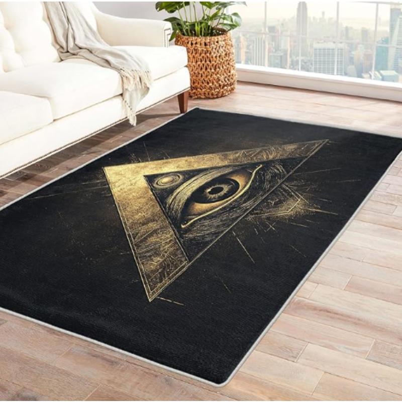 Mystic All Seeing Eye Black Carpet Golden Triangle Sacred Geometry Floor Mat Detailed Green Iris Design Home Decor Rug Classic