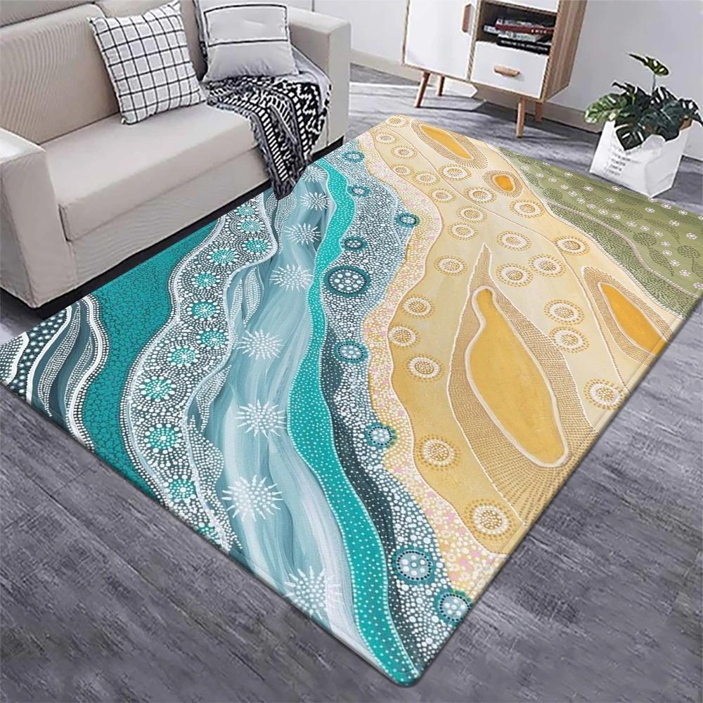 Creative Abstract Ethnic Art Area Rug Collection Unique Geometric Dot Painting Pattern Floor Mat For Living Room