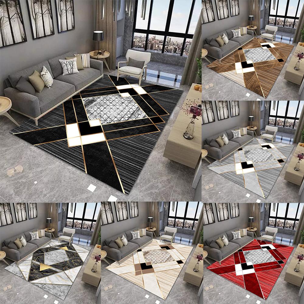 Modern Luxury Geometric Carpet With Gold Line Geometric Patchwork Marble Texture Non Slip Rug For Living Room Decor